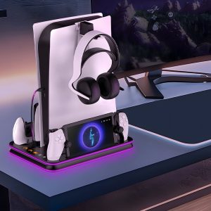JYS P5201 RGB Charging Stand with Cooling Fan and Earphone Hook for PS5 Slim Dual Controller Dock